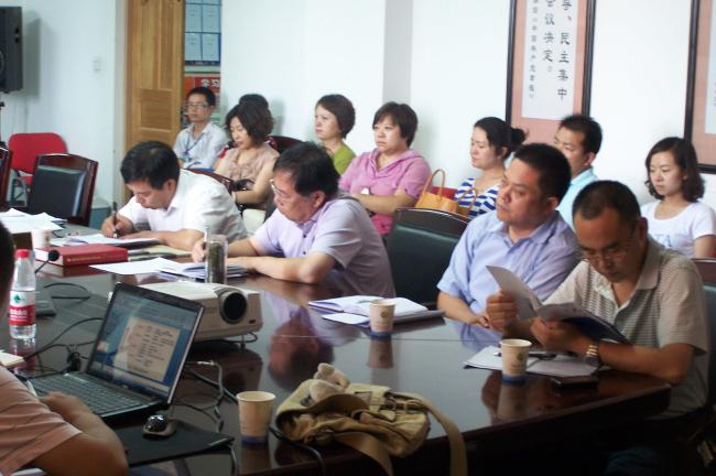 7月4日专家团队在朱立宏部长陪同下先后参观校区基础建设、院系分布及特点、文化建设现状、校园环境、校史馆、榆泉校区、东泉校区等。并举行各分院院长、学院各职能部门负责人的座谈会,就学院文化建设进行座谈交流。