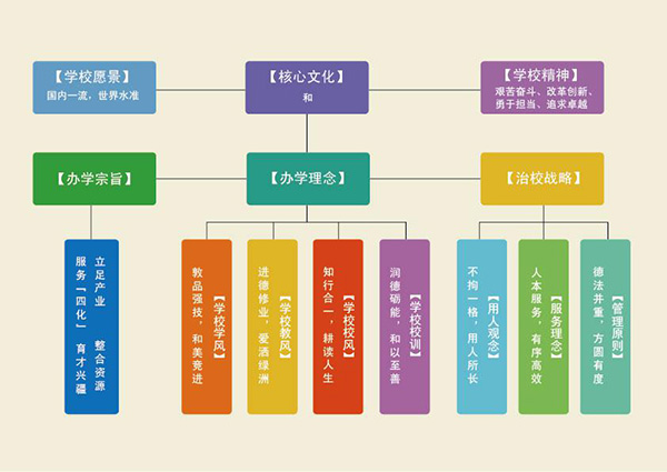 华夏崇和。“喜怒哀乐未发之谓中,发而皆中节谓之和”(《中庸》),言身心之和;“君子和而不同”(《论语·子路》),言与人之和;“天地与我并生,而万物与我为一”(《庄子·齐物论》),言与自然之和。承传统文脉,新疆农职院崇和,以“和”聚众人之心,汇众人之力。学校成员精诚团结,融入团队,充分发挥个人才能;教师合作教学,发挥集体智慧;学生合作学习,学会协调沟通。